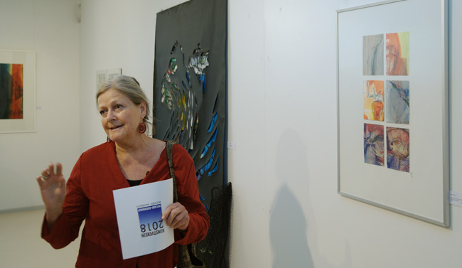 Renate Stolz mit ihrer Arbeit „Durchbrechen der Farbharmonie“