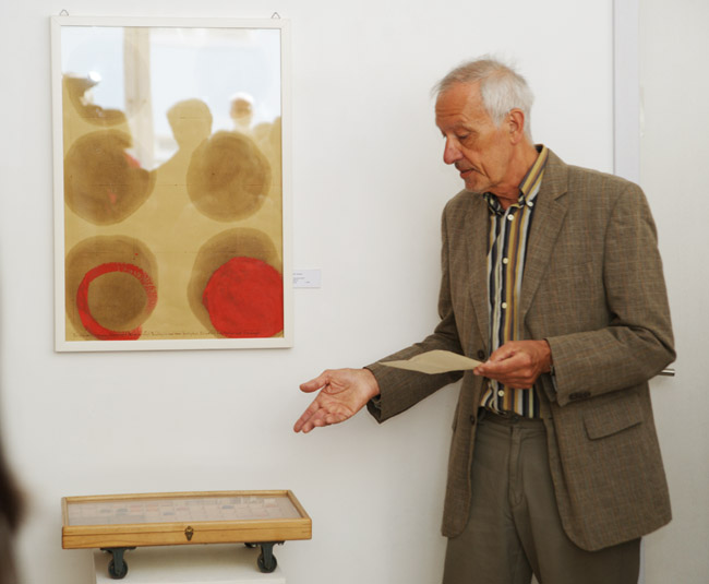 Rolf Fahrbach mit seiner Arbeit „Glasperlenspiel“