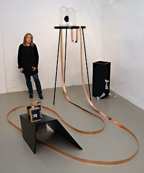 Ulrike Thiele mit ihrer Installation zu “WAGNER IM SPIEGEL DER ZEIT, Von Walhall bis Nibelheim - Architekturvisionen”, 2014 Info Foto vergrößern