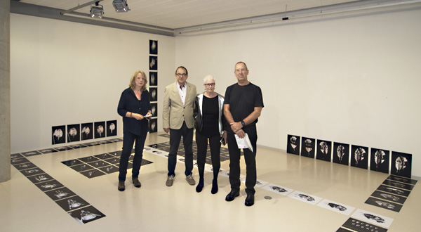 Das Bild oben zeigt (v. l.) Kuratorin Ulrike Thiele, Bürgermeister Roland Burger, Katharina Karrenberg und den Vorsitzenden des Kunstvereins Harald Kielmann.