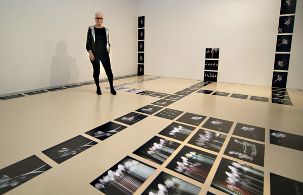 unten: die Künsterin mit einem Teil ihrer Installation