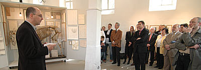 In derartiger Komplexität präsentiert der Künstler nun auch sein auf Papier und anderen unterschiedlichen Trägermaterialien entstandenes zeichnerisches Werk, das in den jeweiligen Ausstellungssituationen kontextualisiert und in eine Konzeption überführt wird, bei dem die einzelne Arbeit nicht unmittelbar entscheidend ist, sondern der Zusammenhang, den es in der Summierung, Anordung und Systematisierung entfaltet. Am Naheliegendsten scheint dabei der Ausstellungsort zu sein. Für den Raum eines ehemaligen Schlachthauses wählt Peter Riek denn auch konsequent Zeichnungen von Knochen und organischen Bildentwürfen aus. Es handelt sich um Zeichnungen, die buchstäblich unter die Haut gehen, das Innere nach Außen kehren und es einem Verwertungszusammenhang unterziehen, bei dem das im Mittelpunkt steht, was im Schlachthaus als Abfallprodukt übrigbleibt: die Knochen. Dabei handelt es sich um eine Todesgeschichte. Wie in einem Altarschrein steht das Knochengerüt eines Pferdeskeletts, als sei der Abdecker gerade noch am Werk gewesen, im Zentrum eines Zusammenhangs, dem sich die Zeichnungen in unterschiedlichen Formatgrößen beigesellen. Dabei wird Zusammenhang und Systematik einerseits heraufbeschworen und andererseits auch unterlaufen. Der Schrein evoziert das Bild der Museumsvitrine, deren merkwürdige Zusammenstellung jedoch dem Bild eines ausgestellten Bildes des modernen naturwissenschaftlichen Erkenntnisstandes zu widersprechen scheint. Vielmehr wird hier erneut das Bild der manieristischen und barocken Wunderkammer heraufbeschworen, wie sie im 16. und 17. Jahrhundert an den feudalen und frühbürgerlichen Orten beliebt war und den ganzen Sammlerstolz in wissenschaftlicher und künstlerischer Hinsicht demonstrieren sollte. In der Wunderkammer, dem archaisch-feudalen Vorläufer unserer aufgeklärten, rationalisierten Museumslandschaften, manifestierte sich nicht der Eifer des Sammelns in der Sytematik, sondern im chaotisch kreativen Beieinander von Künstlichem, ästhetisch Raffinierten, von Fossilem und Naturwissenschaftlichem mit dem Kuriosen und Vergänglichen, an dessen Ende im Sinne des barocken Vanitasgedankens Tod und Verderben am Ende der Zeiten steht.