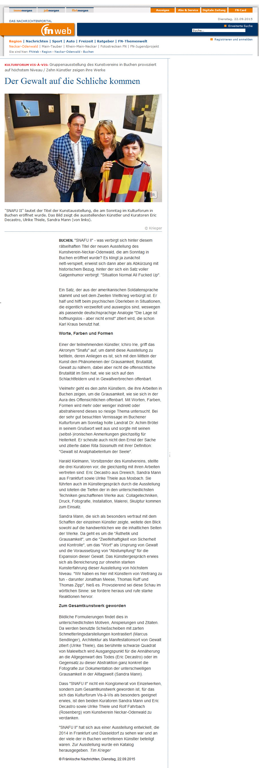 Bericht zur Ausstellung in den Fränkischen Nachrichten vom 22. September 2015 “Der Gewalt auf die Schliche kommen” hier klicken