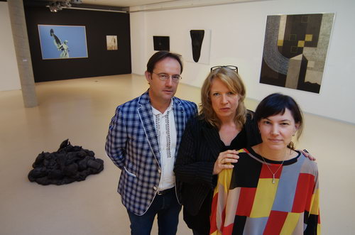 Eric Decastro, Ulrike Thiele und Sandra Mann (im Bild oben von links) mit eigenen Arbeiten (Arbeiten von Ulrike Thiele im Bild unten)