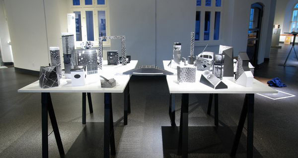 In der Installation „ O. Terazzona“ wandelt sich das Spiel mit der abstrahierten Görlitzer Infrastruktur in die 3. Dimension, die in den Fotocollagen angedeuteten Räume erfahren eine „ sicht- und greifbare“ Räumlichkeit.